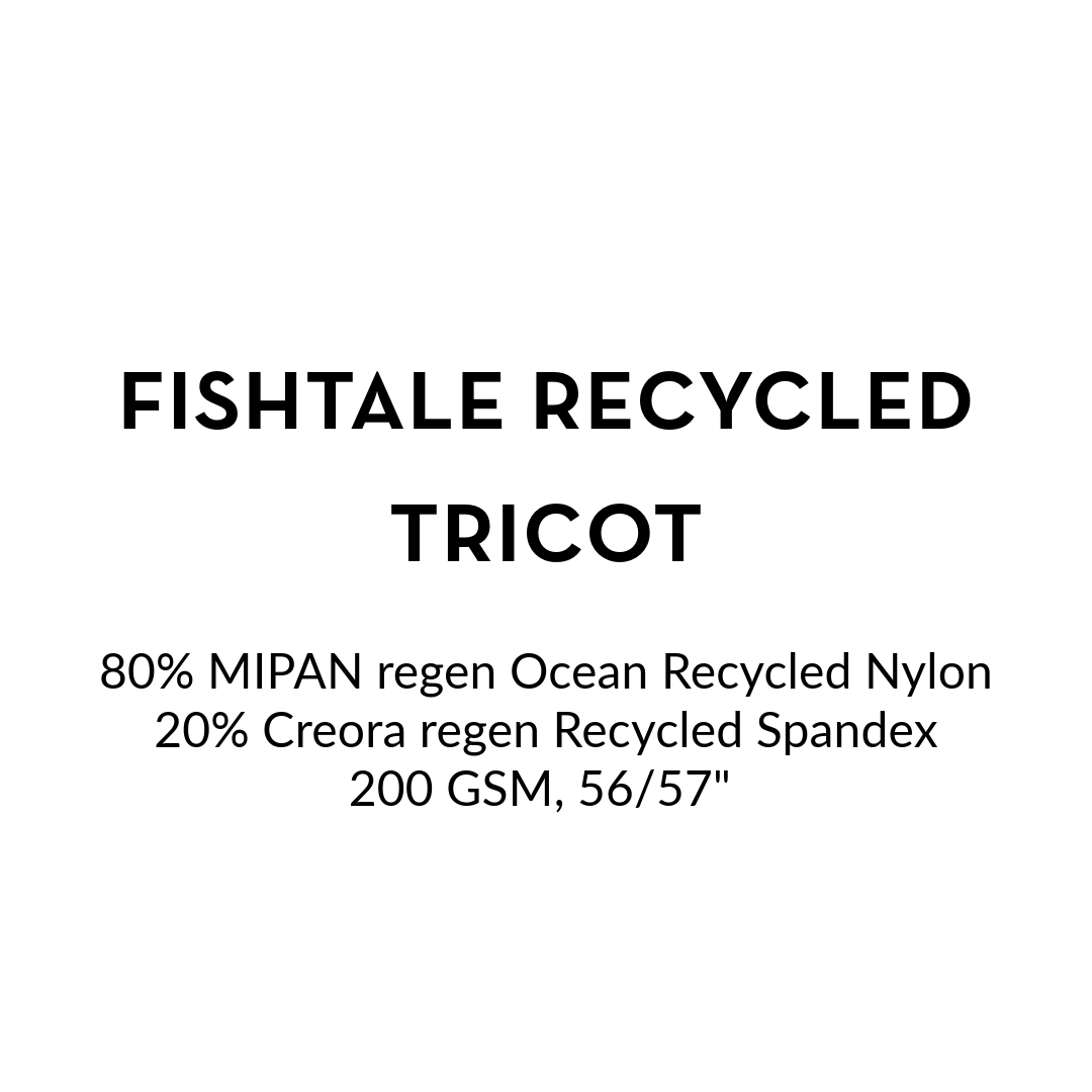 FishTale Rec is a high-performance swimwear fabric made with 100% post-consumer recycled nylon from fishing nets and 100% recycled spandex. Ask your fabric specialist for more details!