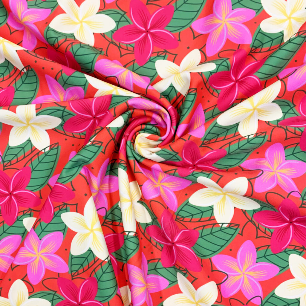Orange Plumeria Print On Tricot